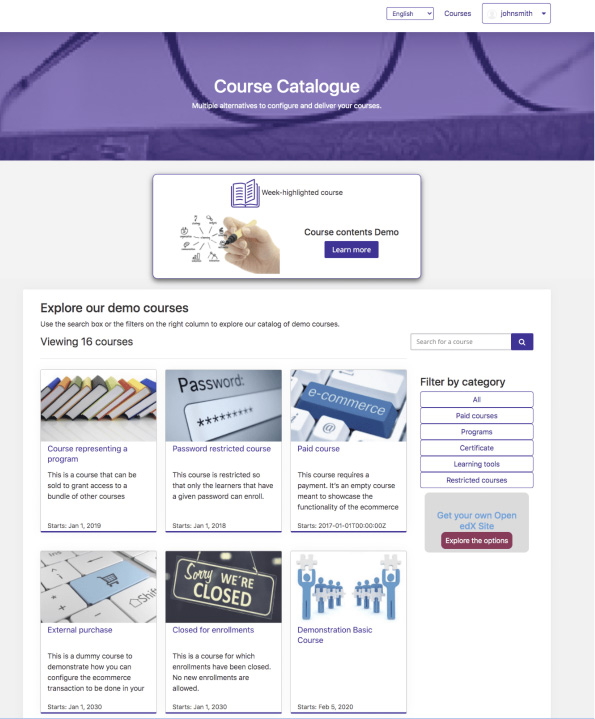 Learners will be able to search by keywords or filter the courses by some criteria.