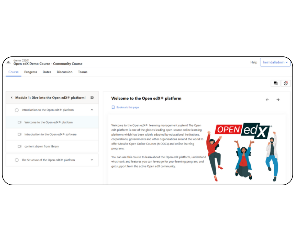 After login, the user normally lands in the learner dashboard, where he/she sees all the courses in which he is enrolled.